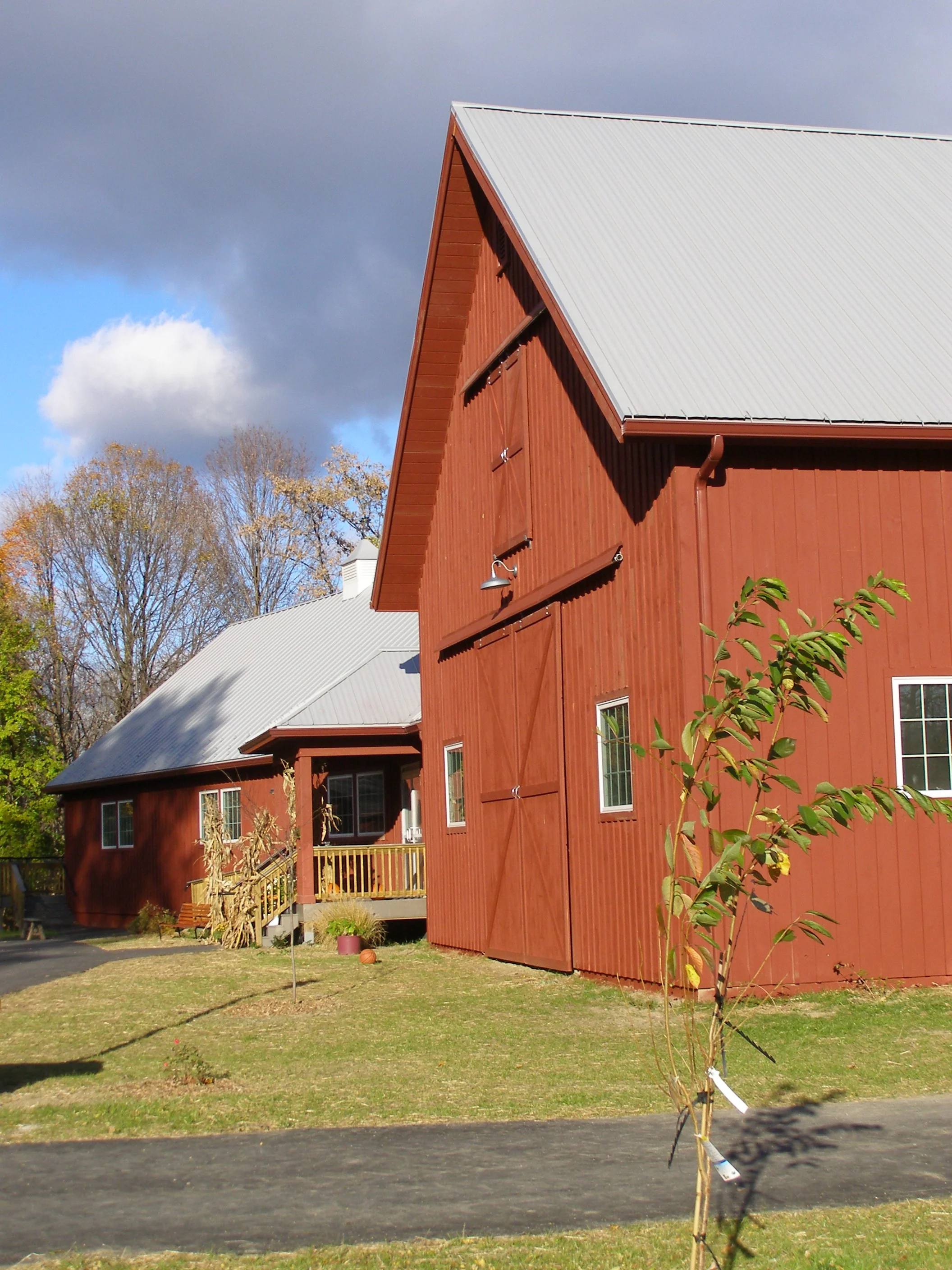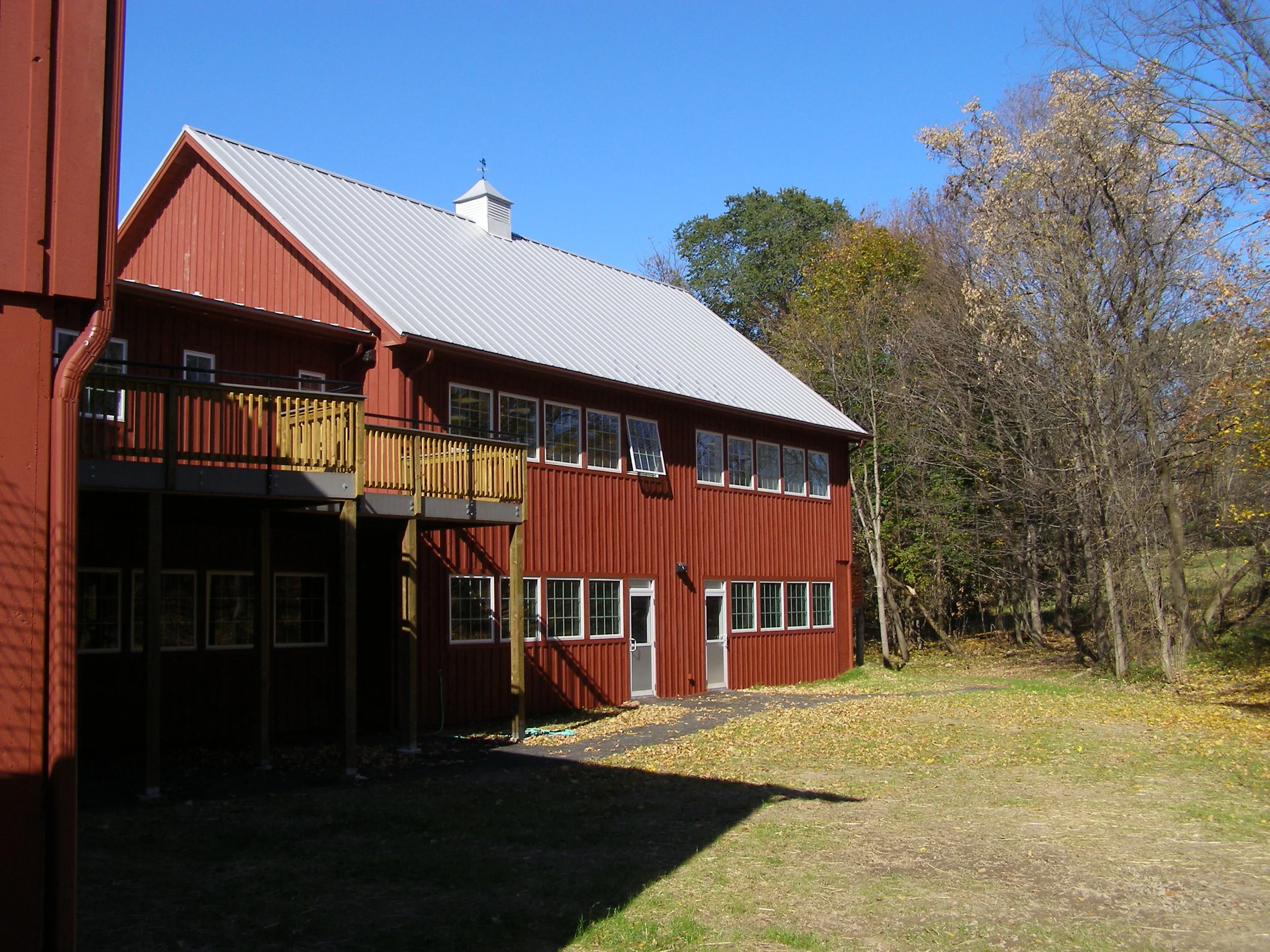The site design and building placement considerations for High Meadow School latest building project strives to accommodate the practical needs of a significant expansion of the school while preserving the quality of the existing contextual fabric. The new barn structure location, together with the existing buildings, creates common exterior courtyard space for access, play and gathering. New landscaping and exterior lighting provide enhanced shade canopies, safety and visual buffering, while utility services were placed underground. The project also includes a state-of-the-art classroom and assembly building. This new building serves as a gathering space for the High Meadow School and the community as a whole. Materials, colors, windows and doors, roof pitch, as well as exterior soffit trim and detailing are all consistent with this theme. The program also includes new upper and lower entrance lobbies, 4 new classrooms, a 260-seat performance / assembly / activity space, together with supporting rehearsal, meeting, storage, and bathroom spaces.